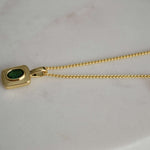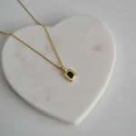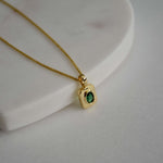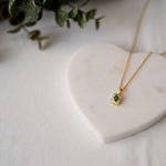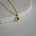 Add a pop of color to your outfit with our stunning Emerald Necklace. Made with gold filled material and adorned with a green cubic zirconia pendant, this piece not only adds a touch of elegance but also adds a vibrant touch to your look. Shine bright with this eye-catching accessory.