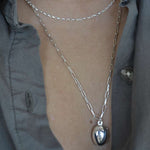 Add a touch of modern elegance with our Locket Necklace. Made with sterling silver, this classic locket pendant hangs from a rectangular link chain for a stylish layering piece. Keep your cherished memories close with this timeless necklace.