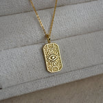 Transform your outfit with the stunning Mati Necklace. Crafted with luxurious gold filled material and adorned with an intricate evil eye pendant, this necklace not only adds a touch of elegance but also serves as a powerful symbol for protection and good luck. Elevate your style and energy with this must-have accessory!